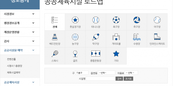 용인시는 28일 시 홈페이지에 관내 모든 공공체육시설의 정보를 한눈에 확인할 수 있는 제공하는 로드맵을 구축했다고 밝혔다. 그동안 유사한 시설임에도 관리 기관이 달라 관련 정보, 예약 등의 서비스를 별도 운영했던 것을 시 홈페이지에 통합해 시민들이 편리하게 이용할 수 있도록 한 것이다. 시 홈페이지에 메인 화면에서 상단 중앙 ‘정보공개’를 클릭하면 하위 카테고리 맨 아랫부분에 공공체육시설 로드맵이 있다. 이…