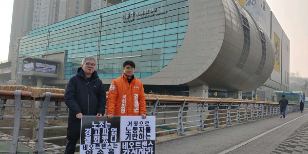용인경전철 노사합의 파기, 네오트랜스(주)를 강력히 규탄합니다. 용인경전철지부가 부분파업과 관련 노조와의 합의를 헌신짝처럼 내던진 네오트랜스(주)를 강력히 규탄합니다. 지난해 파업일보직전까지 갔던 사태가 일단락된 것은 16개 항에 걸친 노사간의 합의가 있었기 때문임은 주지의 사실입니다. 그에 따라 노동조합에서는 조합원 총회를 통해 합의안에 대한 찬반을 묻고 통과시켰는데 이제 와서 손바닥 뒤집듯이 뒤집는 것은 노동조합…