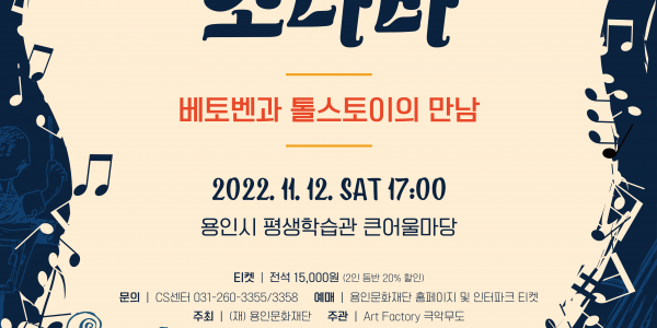(재)용인문화재단(이사장 이상일)은 낭독콘서트 ‘크로이체르 소나타-베토벤과 톨스토이의 만남’을 오는 11월 12일 오후 5시 용인시평생학습관 큰어울마당에서 선보인다. 이번 공연은 베토벤의 ‘크로이체르 소나타’를 듣고 영감을 받은 톨스토이가 결혼과 사랑, 남녀 간의 만남과 이별에 …