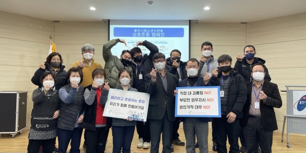 용인시청소년미래재단(이사장 백군기)은 23일 갑질근절을 위한 상호존중 캠페인을 진행하였다 이번 캠페인은 임직원 간 서로 배려하고 존중하는 조직문화를 조성하기 위해 기획되었다. 이를 위해 대표이사, 사무국장 등이 재단 내 전 시설(청소년수련관 외 7개 시설)을 방문하여 직원들과…
