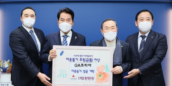 용인시의 대표적인 연말연시 이웃돕기 운동인 ‘사랑의 열차 이어달리기’에 어려운 이웃을 도우려는 단체들의 성금·품 기탁이 이어지고 있다. 용인시는 9일 ㈜GA코리아 이동준 회장 등 관계자 3명이 백군기 시장실을 방문해 성금 1억 1000만원을 기탁했다고 밝혔다. 이들은 지난해 코로나…