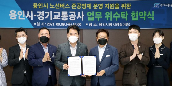 용인시는 9일 경기교통공사와 버스 준공영제 운영 지원을 위한 업무 위·수탁 협약을 체결했다. 전문성과 기술력을 갖춘 교통 전문기관과 힘을 합해 오는 12월부터 시행되는 버스 준공영제가 성공적으로 안착할 수 있도록 하기 위해서다. 이날 협약식에는 백군기 용인시장, 정상균 경기…