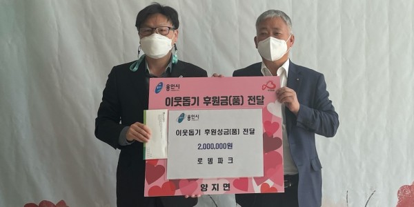 양지면, 용인로뎀파크 이웃 돕기 성금 200만원 기탁