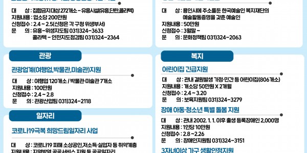 용인시는 코로나19 3차 대유행으로 어려워진 취약계층에 지급하는 용인형 재난지원금을 8일부터 시 홈페이지를 통해 신청 접수한다고 밝혔다. 이날부터 접수 받는 대상은 3자녀 이상 가구(생활안정지원금 10만원, 1만1330가구)와 장애아동‧청소년(특별돌봄지원금 10만원, 2000명),…