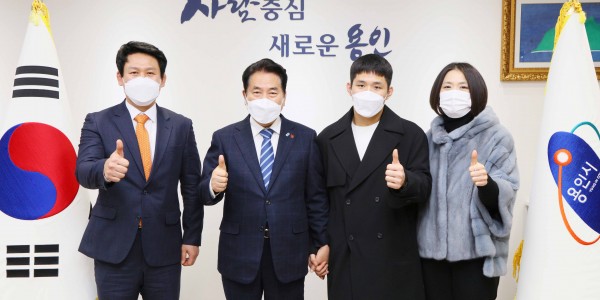 백군기 용인시장은 22일 시장실에서 시 직장운동경기부에 새로 입단한 용인 출신 김유철 유도선수를 만나 격려하고 시의 체육 위상을 높여줄 것을 당부했다. 이 자리엔 김 선수의 지난 1992년 바르셀로나 올림픽 메달리스트로 잘 알려진 김병주 공군사관학교 교수(부)와 김미정 용인대 교수…