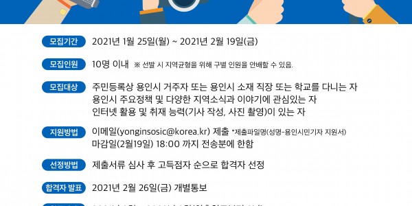 용인 소식지 함께 만들 시민기자단에 지원하세요!