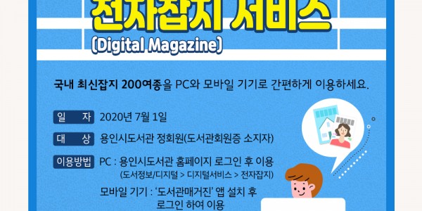 용인시는 코로나19 거리두기가 지속됨에 따라 비대면 독서 컨텐츠를 강화하기 위해 7월부터 정기간행물의 전자책 서비스를 시작한다고 밝혔다. 이에 따라 이용자들은 태블릿 PC나 휴대폰 등 모바일 기기를 통해 시간과 장소에 구애받지 않고 시사‧경제를 비롯한 여행, 스포츠, 취미 등 관련…