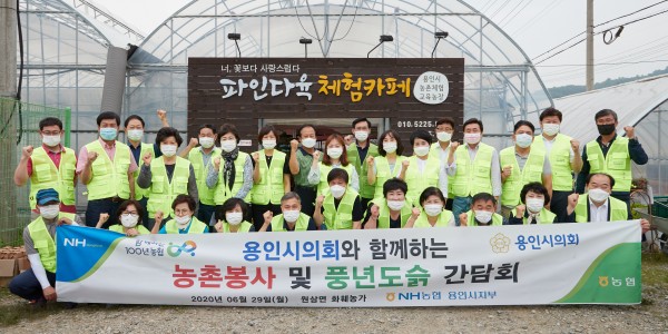 용인시의회(의장 이건한)는 29일 오전 10시부터 오후 2시까지 처인구 원삼면에 위치한 파인다육에서 농촌일손돕기를 하고, 농정간담회에 참석했다고 밝혔다. 이날 이건한 의장을 비롯한 의원들은 의장단의 전반기 임기 마무리와 개원 2주년을 맞이하여 코로나19로 어려움을 겪는 관내 농가를…