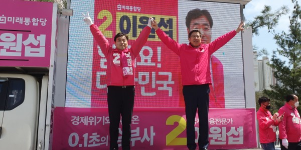 [2020.4.13] 미래통합당 박형준 공동선거대책위원장이 21대 총선 용인시을 지역에 출마한 이원섭 국회의원 후보 지원유세에 나섰다. 13일 오후 1시 30분 박 위원장은 용인시 기흥구청 앞에서 진행된 이 후보의 선거운동 현장을 직접 찾아 미래통합당과 ‘퓨처 메이커’ 이원섭 후보…