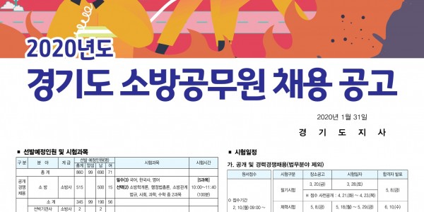 용인소방서(서장 이경호)는 올해 경기도가 도민의 생명‧재산을 지켜줄 소방공무원을 신규채용 한다고 10일 밝혔다. 이번 경기도 소방공무원 신규채용을 통하여 공개경쟁채용 515명, 경력경쟁채용 345명 등 총 860명을 선발하기로 하였다. 원서접수는 오는 10일 오전 9시부터…