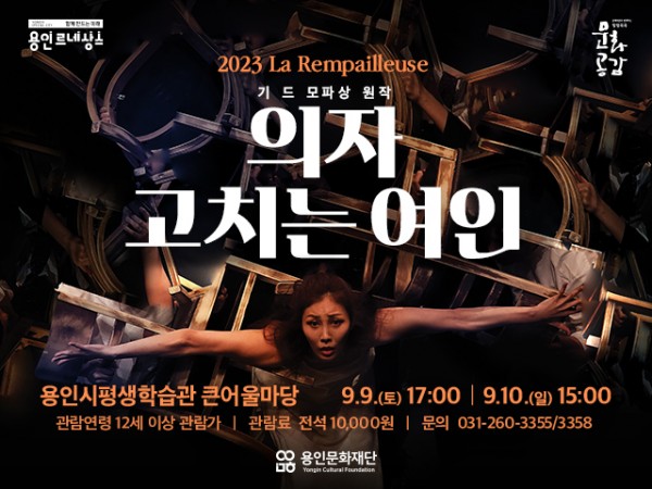용인문화재단(이사장 이상일)은 오는 9일부터 10일까지 양일간 용인시평생학습관에서 연극 을 선보인다. 이번 공연을 함께하는 극단 물결(대표자 송현옥)은 2008년 창단 이후 ‘밑바닥에서’, ‘5분간의 청혼’, ‘햄릿, 여자의 아들’ 등 매년 새로운 작품을 무대에 올렸으며, 주로 고전 작품을 현대화해 신체를 통한 무대언어 개발에 중점을 둬 총체적인 공연예술을 지향하는 극단이다. 오는 9월 용인문화재단에서 선보이는 연극…
