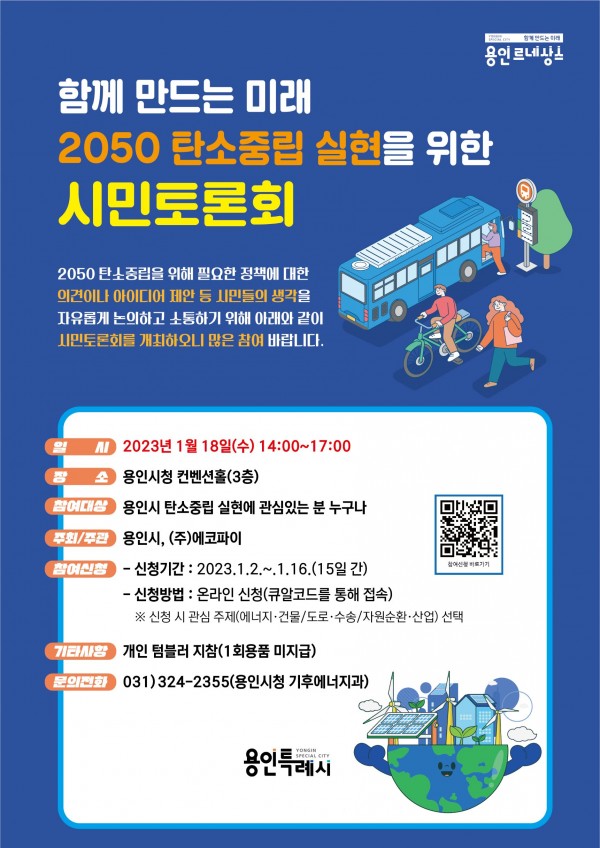 용인특례시, 탄소중립 실현 시민토론회 참여자 모집