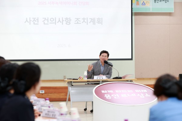 이상일 용인특례시장은 18일 수지구청 대회의실에서 ‘2025년 서부녹색어머니회 간담회’를 1시간 50분 가량 열고 초등학교 학생들의 통학 안전과 관련한 학부모들의 다양한 의견을 듣고 시의 지원방안을 논의했다. 간담회에는 유민영 서부녹색어머니회 연합회장을 비롯해 수지‧기흥구 소재 27개 초등학교 회장 등 50여 명이 참석했으며, 기흥‧수지구 교통·도로 관련 부서장과 서부경찰서와 용인교육지원청 관계자들이 함께했다. …