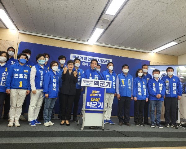 백군기 더불어민주당 용인시장 예비후보는 오늘(6일) 용인시청 브리핑룸에 출마기자회견을 갖고 6·1 지방선거 용인시장 선거 출마를 공식화했다. 백군기 예비후보는 “백군기의 민선 7기 시정 4년은 난개발·부패·갈등과의 싸움이었다”며, “난개발특위운영·플랫폼시티 등 개발이익 시민환원·SK하이닉스반도체클러스터 사업 5월 착공 등의 성과를 거뒀다”고 평가하였다. 백 예비후보는 이어 용인특례시 첫 민선 시장에 도전하며 ▲시민이 주인인…