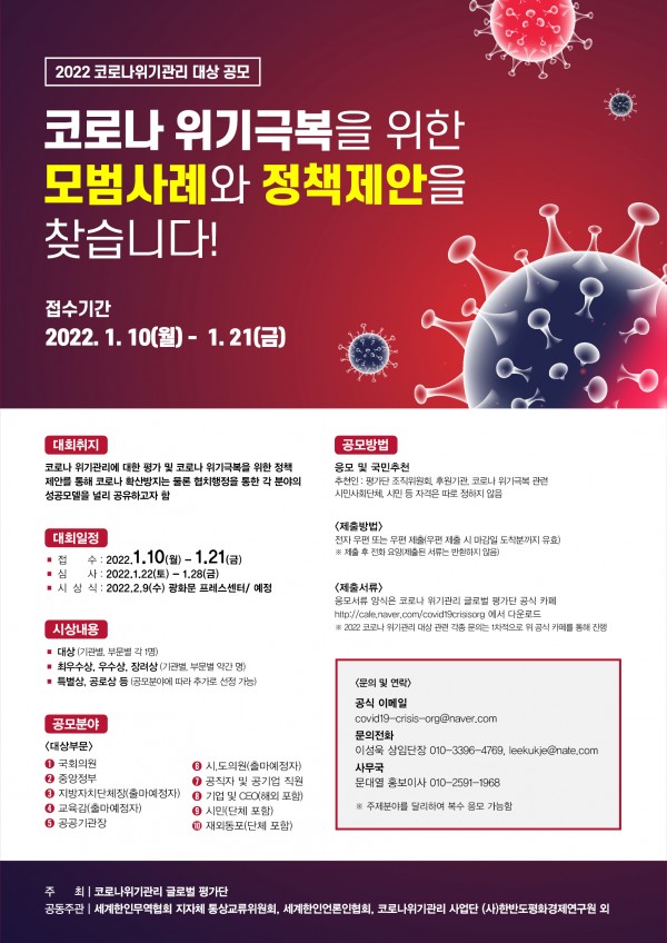 용인시산업진흥원‘2022년 코로나 위기관리 대상 공모’