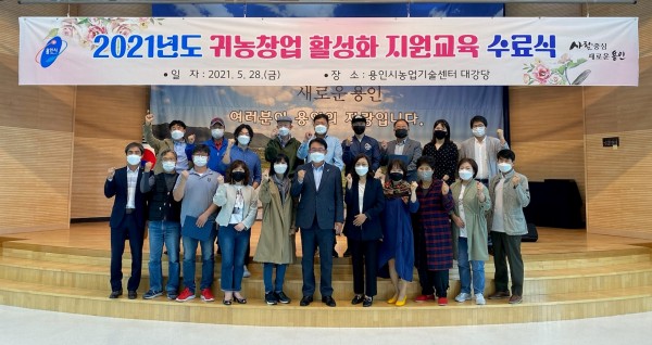 용인시는 28일 처인구 원삼면 농업기술센터에서 열린 ‘귀농창업 활성화 지원교육’수료식에서 농업인 29명이 교육을 수료했다고 밝혔다. 이들은 시로 귀농한 농업인이나 귀농을 희망하고 있는 시민들로 지난 4월7일부터 5월21일까지 12번에 걸쳐 진행된 교육 과정을 마쳤다. 교육은 코로나19 감염 예방을 위해 ZOOM 플랫폼을 활용해 진행됐으며, 교육생들은 귀농 현황·정책, 농촌 융복합산업 트렌드 분석 등 귀농 창업에 유용…