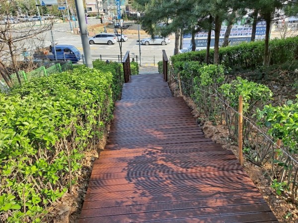 용인시는 20일 기흥구 청덕동 도담근린공원 내 청덕중 학생들이 이용하는 통학로 35M 구간을 정비했다고 밝혔다. 기존 통학로가 울퉁불퉁한 자연석 계단과 판석으로 되어있어 안전사고의 위험이 있고, 비가 올 경우 토사가 유출되는 문제가 있었기 때문이다. 이에 시는 통학로 35M 구간 중 자연석 계단을 데크계단으로 교체하고 폭을 1.5m에서 1.8m로 넓혔다. 판석 포장부는 평탄화 작업을 한 후 안전하게 다닐 수 …