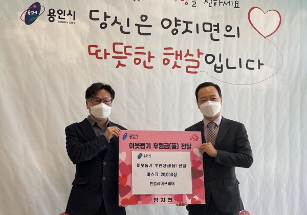 양지면, 한컴라이프케어에서 방역용 마스크 2만장 기탁