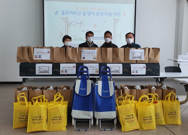 지구촌사회복지재단에서 운영하고 있는 용인시수지노인복지관(관장 한근식)은 지난 6일 수지중앙라이온스클럽(회장 박준상)과 저소득 어르신 및 독거노인어르신 50가정에 설맞이 떡국 키트 나눔을 진행했다. 이번 설 행사는 수지중앙라이온스클럽의 후원금을 통해 진행되었으며 어르신들께 떡국 키트와 한과 등 명절 맞이 키트 제공과 비대면 배달 봉사도 함께 진행하여 따뜻한 설 명절을 보낼 수 있도록 했다. 박준상 회장은 ”거리두기…