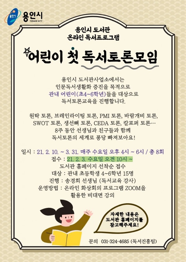 용인시 도서관,‘어린이 첫 독서토론모임’참가자 모집