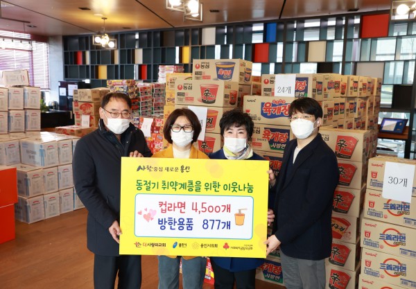 용인시의회 장정순 문화복지위원장(풍덕천1·동천동/더불어민주당)은 28일 오후 2시 수원 광교2동에 위치한 더사랑의교회 로비에서 진행된 긴급구호 물품 전달식에 참석했다. 방역수칙을 철저히 지키며 진행된 이날 전달식에는 용인시의회 장정순위원장·명지선 의원, 더사랑의교회 긴급구호부 이지함 목사, 용인시 관계자 등이 참석했다. 수원시 영통구 광교2동에 위치한 더사랑의교회(담임목사 이인호)는 이웃돕기 성품 컵라면 9,000개…