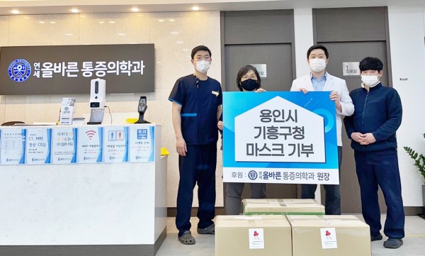 용인시 기흥구는 지난 12일 신갈동 소재 연세올바른통증의학과의원서 어려운 이웃에 전해달라며 마스크 3000장을 기탁했다고 밝혔다. 서상민 원장은 “취약계층 이웃들이 코로나19를 비롯한 감기 바이러스 등을 예방하도록 돕기 위해 마스크를 기탁했으며 앞으로도 꾸준한 나눔을 실천할 것”이라고 말했다. 구 관계자는 “이웃을 위해 따뜻한 마음을 나눠줘 감사하며 기탁한 마스크는 기흥노인복지관의 돌봄서비스를 받고 있는 170여명…