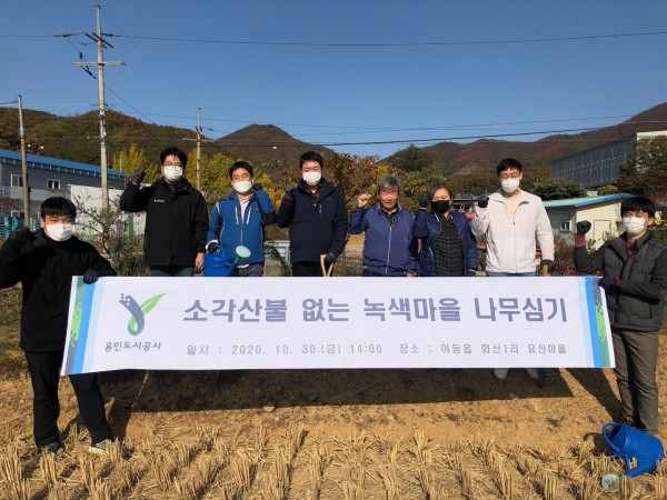 용인도시공사는 10월 30일 처인구 이동읍 화산1리 요산마을 하재광 이장 등 주민들과 공사 산단사업팀 직원 8명이 함께“2020 소각산불 없는 녹색마을 나무 심기”행사를 실시했다. 직원들은 매년 산림청에서 불법소각으로 인해 발생하는 산불방지를 위해 힘쓴 ‘소각산불 없는 녹색마을’에 선정된 화산1리 요산마을을 찾아 마을 입구에 편백나무를 심었다. 천연 항균 물질 등이 함유되어 치유효과가 높은 편백나무를 심어, 앞으로도 주민…