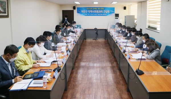 용인시 처인구는 7일 구청 소회의실에서 지역 시의원들과 2021년도 추진 예정인 주요 사업들과 지역 현안을 논의하는 간담회를 개최했다. 지난 2월에 이어 올해 두 번째로 열린 간담회에는 김상수 용인시의회 부의장을 비롯한 지역 시의원과 처인구청장을 비롯한 11개 과 부서장이 참석했다. 구는 이날 처인구 도시계획도로 개설, 어린이 보호구역 정비, 고림동 일원 경안천 횡단보도교 설치 등 내년도 주요사업을 설명하고 시의…