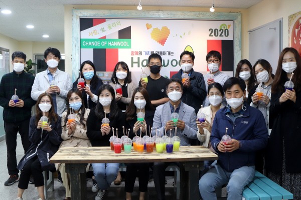 용인시 환경위생사업소 도시청결과 직원들은 6일 한울장애인공동체와 함께 아이스팩 방향제 만들기 행사를 열었다. 배달문화 확산으로 아이스팩 사용이 급증함에 폐기물 발생을 줄일 수 있도록 가정에서 쉽게 따라할 수 있는 재활용 방법을 공유하려는 것이다. 이날 직원들은 1회용 플라스틱 컵을 깨끗하게 소독한 후 아이스팩에 들어있는 젤을 절반 정도 넣고 물감을 넣어 색을 낸 뒤 방향제 스틱을 꽂아 향기나는 오일을 1~2방을 떨어…