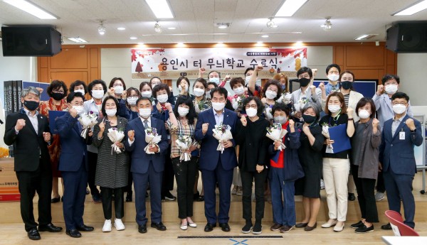 용인시 수지구 상현1동은 8일 마을공동체를 발굴해 역량을 키울 수 있도록 돕는‘터 무늬 학교’ 수료식을 했다. 이날 수료식엔 백군기 용인시장을 비롯해 프로그램 수료생 23명, 동 관계자 등이 참석했다. 이 자리에서 백 시장은 “코로나19로 어려운 상황임에도 건강한 마을 공동체를 만들기 위해 교육 과정을 성공적으로 마무리한 수료생들에게 고맙다”며 “시도 다양한 정책을 발굴해 주민들이 주가 되는 마을공동체 활동을 적극 …