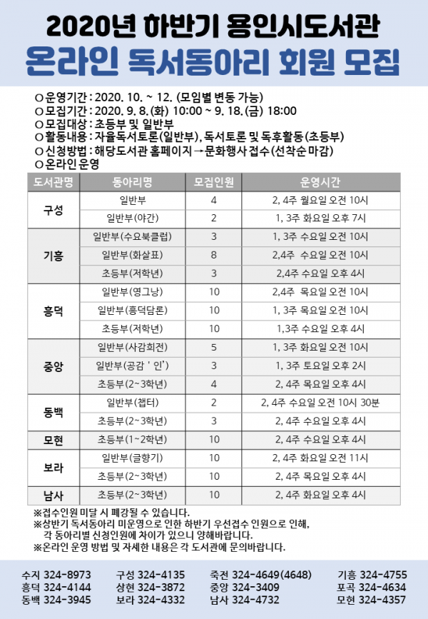 용인시, 도서관 온라인 독서동아리 회원 107명 모집