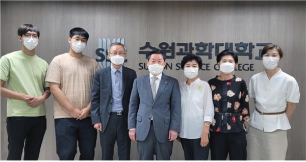 수원과학대학교(총장 정원섭)은 24일 교내 학생들과, 교수진, 가족회사 기관장과의 간담회를 주관하여 진행했다. 이날은 수원과학대학교 정원섭 총장, 지무성 부총장, 송건 교학처장, 김인숙 학생복지처장, 홍나미 사회복지학과장, 고병욱, 김준형 학생 등과 가족회사인 행복가득한주간보호센터 박윤자 센터장 등이 참여하였다. 이번 간담회는 최근 코로나19 바이러스가 확산되어 국가자격증 취득을 위한 실습에 심한 어려움을 겪고 있는 학…