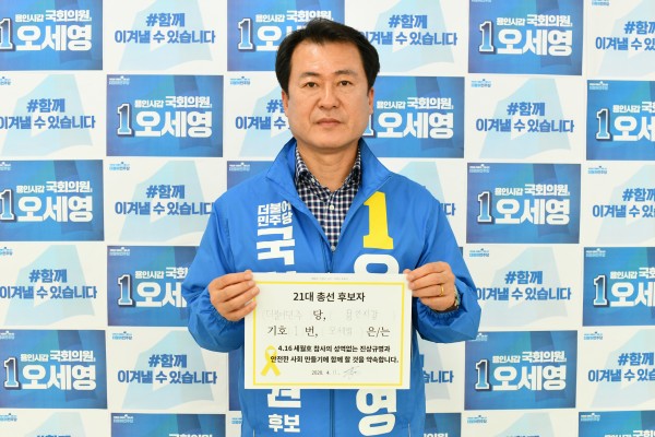 □ 오세영 더불어민주당 용인시갑 국회의원 후보가 13일 4.16연대에서 주관하는 ‘세월호 참사 5대 정책과제 약속운동’에 동참하여, 성역 없는 진상규명과 안전한 사회 만들기에 함께할 것을 약속했다고 밝혔다. □ 5대 정책과제는 ▲세월호 참사 관련 대통령 기록물 공개 ▲ 세월호 참사 등 사회적 참사 진상규명 조사기간/인력 보장 ▲ 김관홍법 입법(민간 잠수사, 희생 기간제 교사 등 피해 지원) ▲ 중대안전사고 시 국가책임, …