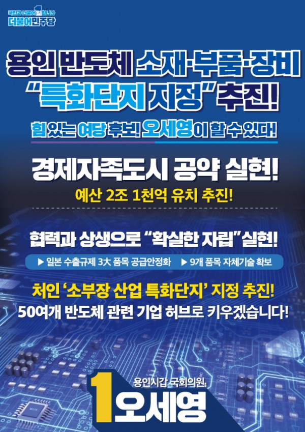 오세영 후보, 강한 여당의 힘으로 처인에 2조1천억 소·부·장 반도체 특화단지 조속히 유치하겠다.