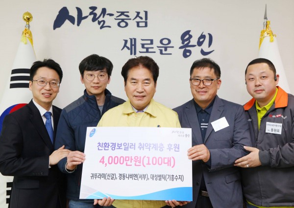 용인시는 20일 코로나19로 어렵게 생활하는 이웃을 돕기 위해 청소근로자부터 주민단체까지 각계각층서 성금‧품 기탁이 이어지고 있다고 밝혔다. 이날 성남시 중원구 도소매업체 브이사이더 김정구 대표가 백군기 용인시장을 찾아와 어려운 이웃에게 전해달라며 소독제 1000개를 기탁했다. 이 자리엔 김 대표와 친구 관계인 2004년 아테네 올림픽 유도 금메달리스트인 이원희 교수도 동참해 코로나19 극복을 응원했다. 같은…