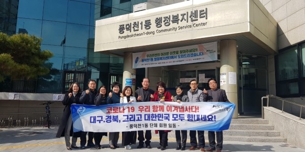 용인시 수지구 풍덕천1동은 6일 통장협의회 등 7개 민간단체가 대구․경북 지역의 코로나19 어려움을 극복하는데 써 달라며 성금 390만원을 기탁했다고 밝혔다. 성금은 장정순 용인시의회 시의원 및 통장협의회, 주민자치위원회, 노인회, 새마을지도자회, 부녀회, 청소년지도위원회, 체육회 회원들이 십시일반 모은 것이다. 안종기 풍덕천1동 노인회 분회장은 “대구․경북 주민들의 고통과 마음의 상처를 극복하는데 도움이 되길 바라…