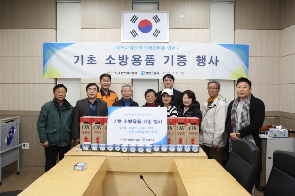 용인소방서(서장 이경호)는 26일 한국소방산업기술원과 함께 기흥동 주민자치센터에서 화재취약시설의 안전을 위해 소화기와 단독경보형 감지기를 전달하는 기증식을 진행했다고 밝혔다. 이번 행사는 한국소방산업기술원의 지역사회 안전을 위한 사회공헌활동의 일환으로 진행되었으며, 화재취약시설인 기흥동 소재 경로당 17개소를 대상으로 주택용 소방시설(소화기 100개, 단독경보형감지기 100개)을 기증하였다. 한편 이날 행사 종료…