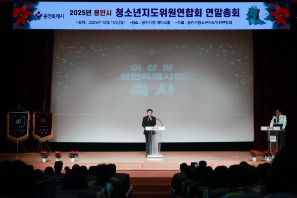 용인특례시(시장 이상일)는 15일 시청 에이스홀에서 ‘청소년지도위원연합회 연말총회’를 개최했다고 17일 밝혔다. 행사에는 이상일 시장과 시도의원, 청소년지도위원연합회 관계자 등 200여 명이 참석했다. 청소년지도위원은 매월 지역 곳곳에서 청소년의 음주나 흡연 행위 등을 지도하고 우범지대 순찰과 캠페인 등 다양한 활동을 한다. 올해 기준 처인구 212명, 기흥구 215명, 수지구 159명 등 총 586명의 청소년…