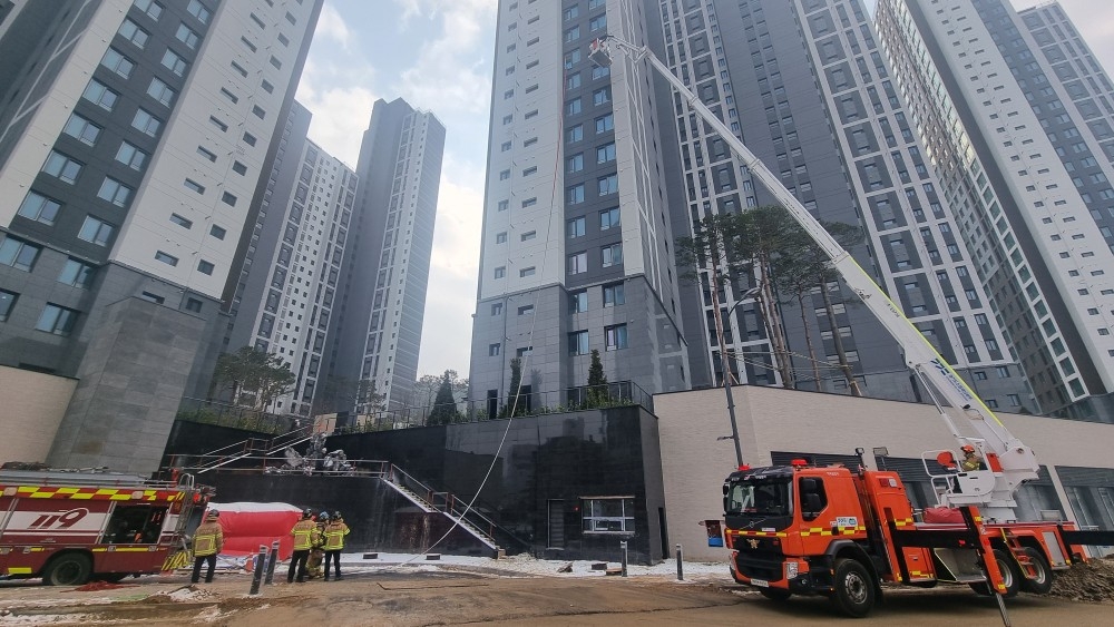 용인소방서(서장 안기승)는 지난 11일 김량장동 소재의 준공을 앞둔 신축아파트 건설현장에서 아파트 화재에 대비하고자 화재 대응 및 구조훈련을 실시했다고 밝혔다.