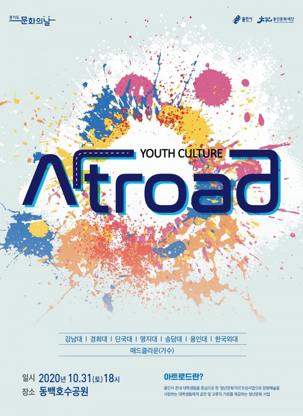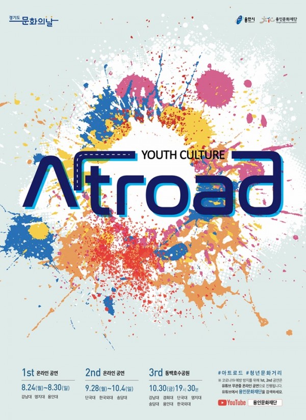 (재)용인문화재단(이사장 백군기)은 문화예술을 사랑하는 대학생들에게 공연 및 교류의 기회를 제공하고자 관내 대학을 중심으로 한‘청년문화거리’조성사업인 ‘아트로드’를 진행한다. 청년문화공동체 형성과 청년 문화 예술 콘텐츠 개발에 기여하기 위해 기획된 이번 사업은 당초 대학 중심 거리에서 3회의 야외 공연으로 계획됐으나, 코로나19의 확산 방지를 위하여 그중 2회는 비대면 온라인 공연으로 변경 운영된다.&nbs…