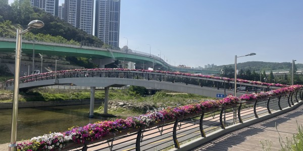 용인시 기흥구 영덕2동은 지역 내 청현교 난간에 설치한 페튜니아가 만개했다고 25일 밝혔다. 동은 지난 4월 신갈천에 있는 청현교 구간에 페튜니아 꽃다리를 조성한 바 있다. 페튜니아는 5월부터 개화를 시작해 늦여름까지 2, 3개월 동안 꽃이 피어있게 된다. 동 관계자는 “주민…